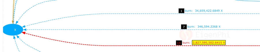 Step 13: Transfer 2,827,595,502.6415 X back to the X contract, bringing the balance of the X token of the X contract to 10,000,346,595.226849.